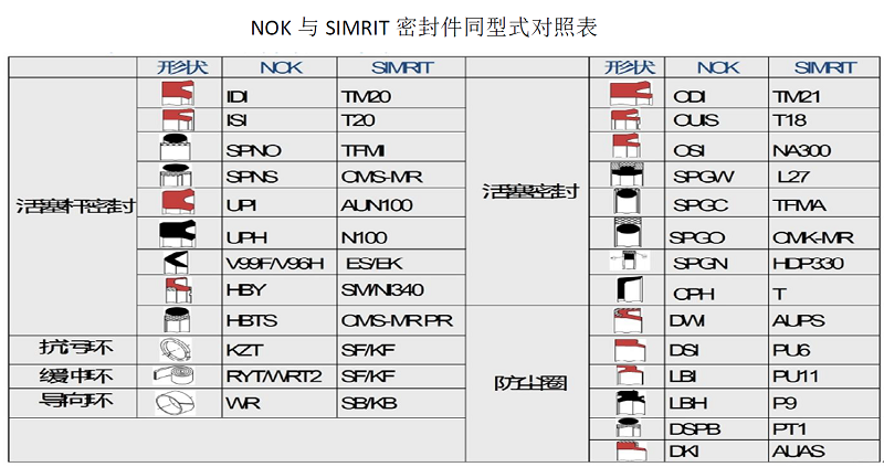 NOK與SIMRIT密封件同型式對照表