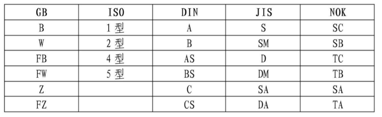 油封結(jié)構(gòu)標(biāo)注各國標(biāo)準(zhǔn)對(duì)照表